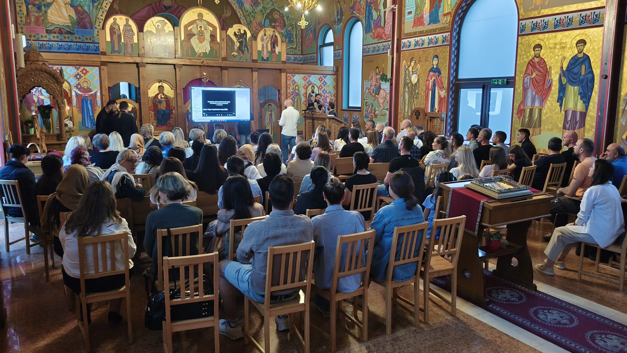 У храму Покрова Пресвете Богородице у Салцбургу, уочи празника Рођења Пресвете Богородице, служена је свечана вечерња служба са петохлебницом, а у наставку верници су присуствовали пројекцији филма “Љубав Твоја и непослушност моја”, аутора Луке Ђурапчевића.